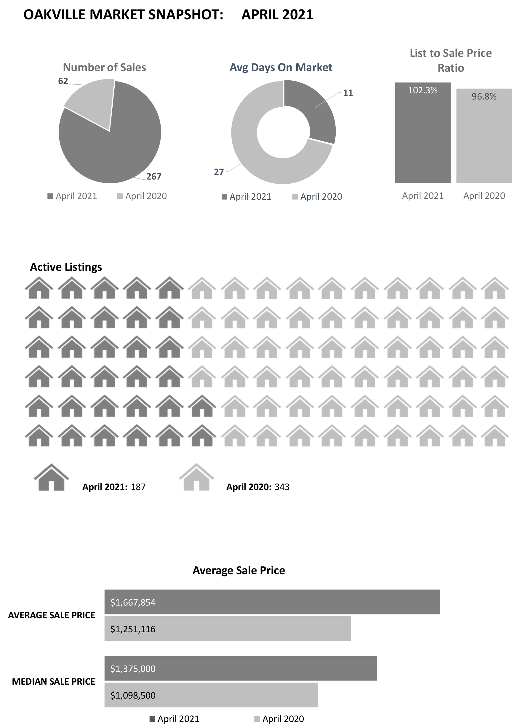 Oakville real estate market for the month of April 2021 in comparison to April 2020, taking into account all property types: